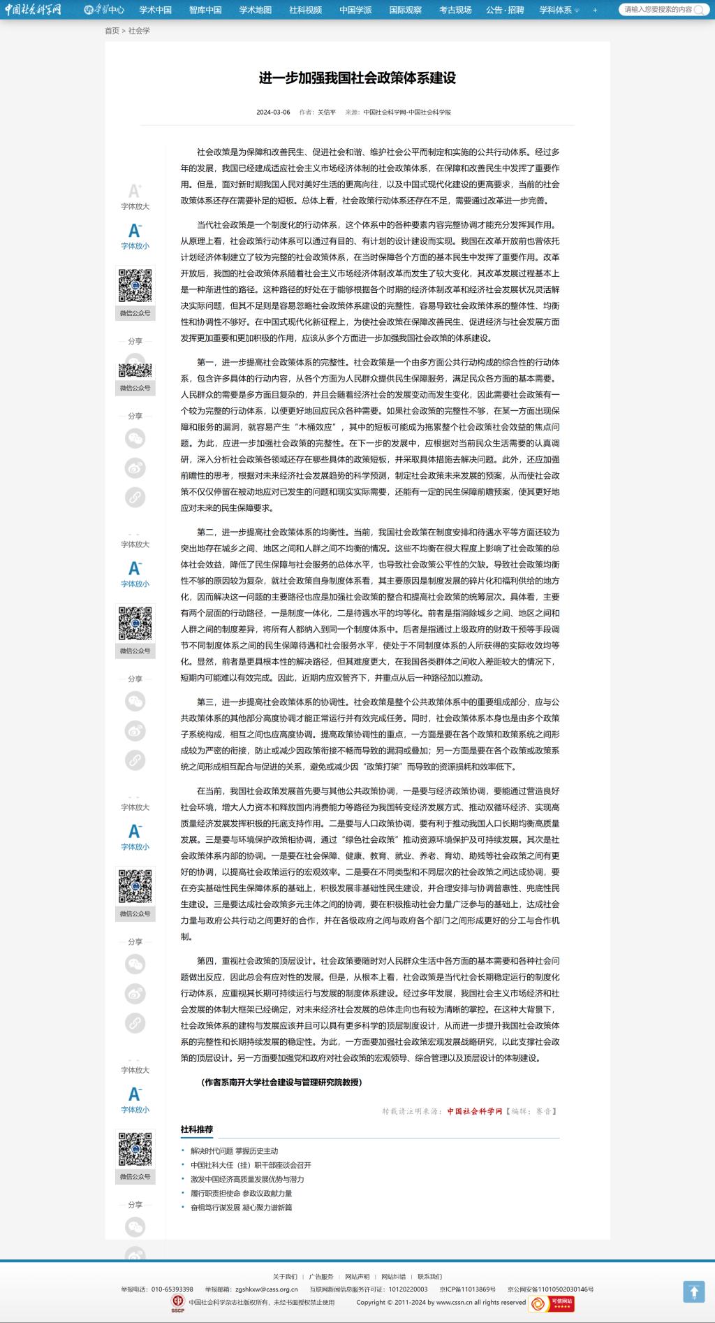 【编者按】本文作者系betway西汉姆联官网社会建设与管理研究院教授关信平,原文3月6日载于中国社会科学网(进一步加强我国社会政策体系建设-中国社会科学网 (cssn.cn))