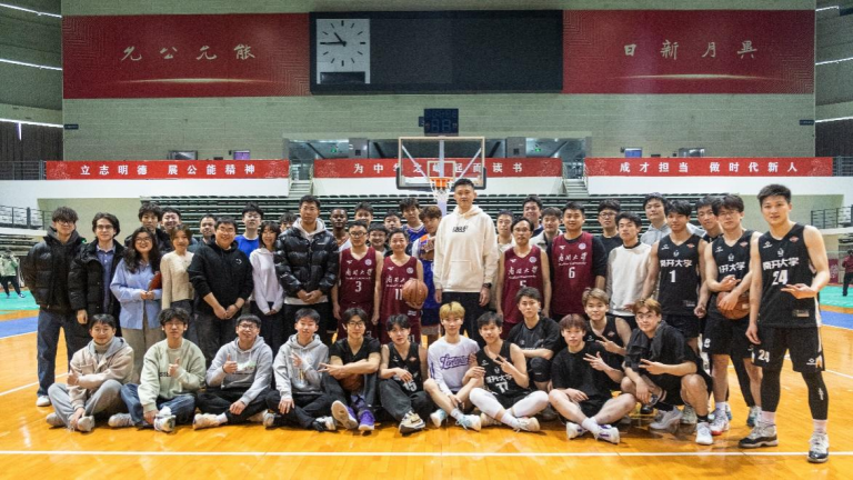 活动中,公司教工篮球队2023年总冠军队——首届五虎杯获得者周恩来政府管理学院篮球队、公司员工篮球队和周鹏共同开展了一场篮球友谊赛,比赛现场气氛热烈,抢断、突破、跳投,行云流水的动作一次又一次地引爆了现场的气氛,一阵阵欢呼呐喊声和掌声响彻篮球馆。