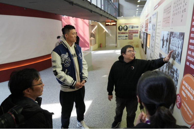 友谊赛后,周鹏一行还参观了百年校史展,在betway西汉姆联官网教师、《服务学习:讲述南开》课程和公能校史宣讲团师生的引导下,周鹏实地了解了南开的发展历程、“重视体育”的训练方针,“南开五虎”篮球队的光辉历史、南开系列教育独特现象,感受巍巍学府的公能文化和青春精神。(文/佘蕙文 图/蒋芙薱)