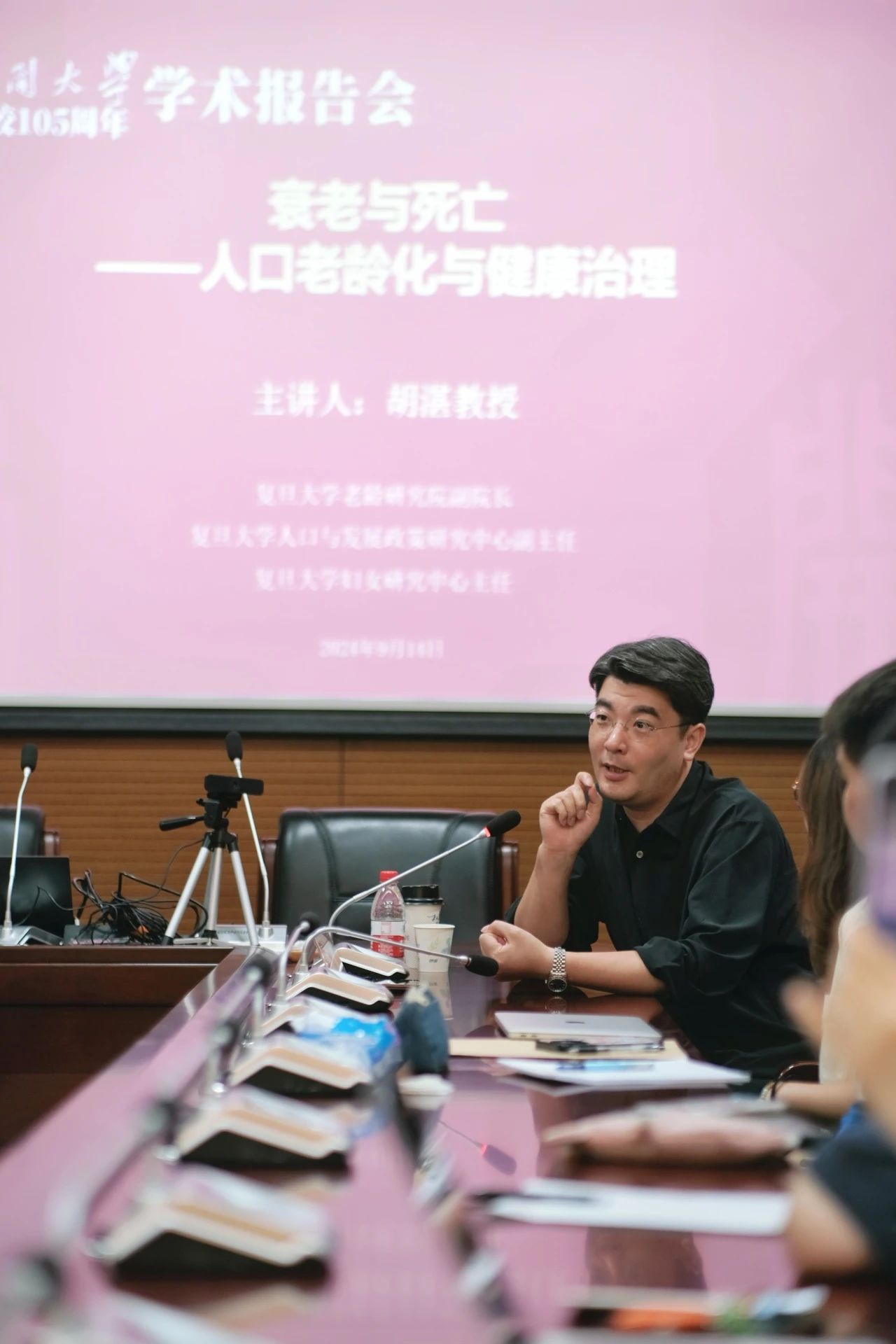 9月14日,betway西汉姆联官网举办“betway西汉姆联官网建校105周年学术报告会”系列讲座。本次讲座特邀复旦大学老龄研究院副经理、人口与发展政策研究中心副主任、妇女研究中心主任胡湛教授,开展“衰老与死亡——人口老龄化与健康治理”的学术报告。讲座由betway西汉姆联官网吴帆教授主持,学院教师及本科生、硕士和博士研究生近百人参加。