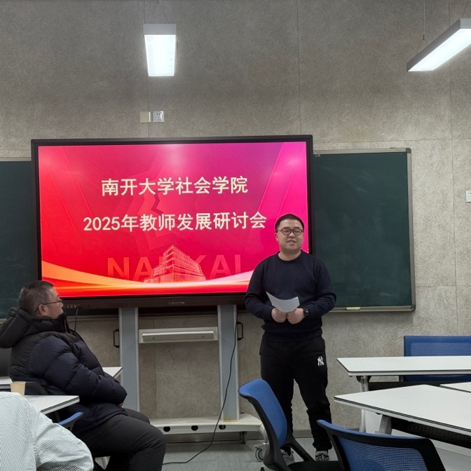 社会工作与社会政策系青年教师黄凡交流了自己在工作期间的丰富收获和日常点滴。他感谢前辈同事对于年轻人的帮助和包容,同时也针对教学和科研的平衡分享了自己的心得。
