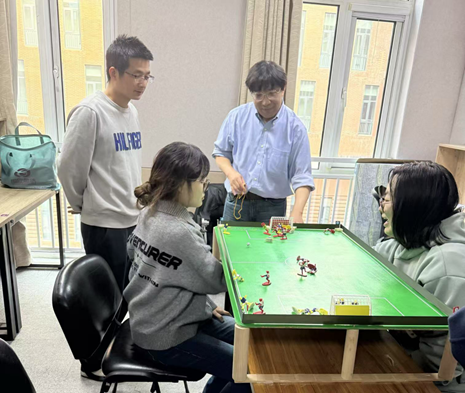 当科技遇上运动,会碰撞出怎样的火花?2025年3月1日,天津大学机械工程学院讲席教授辛千凡与betway西汉姆联官网社会心理学系师生携手体验了一项融合科技与运动的创新项目——磁控桌面足球体验活动。本次活动由辛千凡教授提供设备与技术支持,由社会心理学系助理研究员付春野博士负责联系组织。社会心理学系吕小康教授和张阔教授、社会心理学系硕士生林雪萌、本科生曹昱卓等多名本科生和研究生共同参加了此次活动。