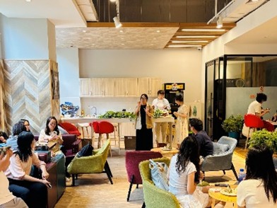 活动伊始,咖啡厅里满是端午雅韵。香囊材料错落摆放,艾草菖蒲鲜嫩翠绿,散发着阵阵清香,瞬间点燃了大家的参与热情。专业老师率先科普,从香囊里艾草、白芷等香料的驱虫安神功效,到艾草菖蒲悬挂门楣的习俗由来,再到制作要点,深入浅出,让“端午新手”们快速掌握关键。