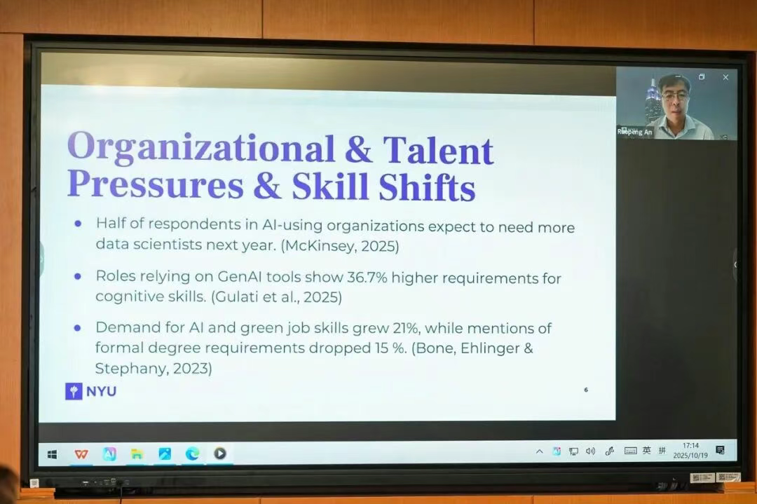 安若鹏教授指出,随着众多组织大规模应用AI且投入成本日益高昂,其对劳动力市场的根本性重塑已然开始。大量现有岗位面临被替代的风险,这不仅可能加剧社会贫富分化,也将彻底改变企业的用人逻辑与标准。面对这一变局,他进一步对高等教育在AI时代的使命进行了前瞻性思考。同时,他通过解析AI智能体的核心特征,生动展示了其在辨别信息真伪、进行健康饮食估算、分析政策舆情乃至辅助质性研究等多方面的实际应用案例,为理解AI的巨大潜力提供了生动例证。