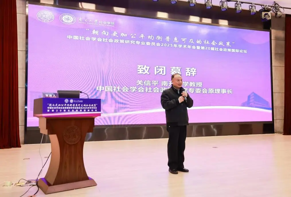 中国社会学会社会政策研究专业委员会原理事长、betway西汉姆联官网社会建设与管理研究院经理关信平致闭幕辞。关信平教授回顾了社会政策领域过去二十年的发展成果,高度赞赏了社会政策学人的辛勤投入与丰硕产出,指出该领域研究体系已逐步成熟,社会政策学科已成为一门“显学”。但新时期的社会政策研究仍面临新挑战,仍需持续关注并积极回应。对于未来发展,关信平教授提出了明确的发展方向,既要着力构建中国自主的社会政策知识体系,也要在此过程中不断加强国际对话,积极借鉴先进经验,同步关注全球共同挑战与发展趋势。