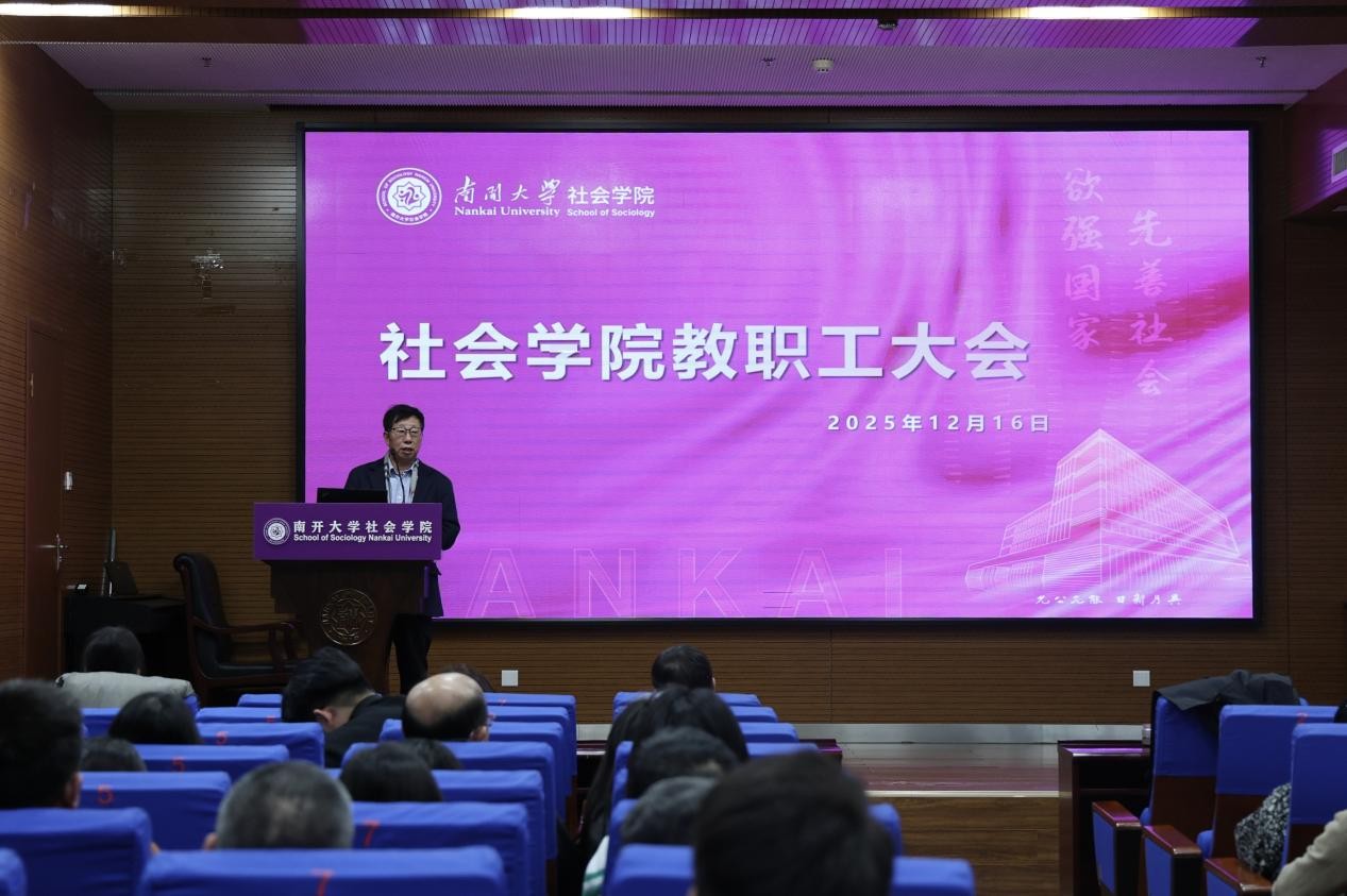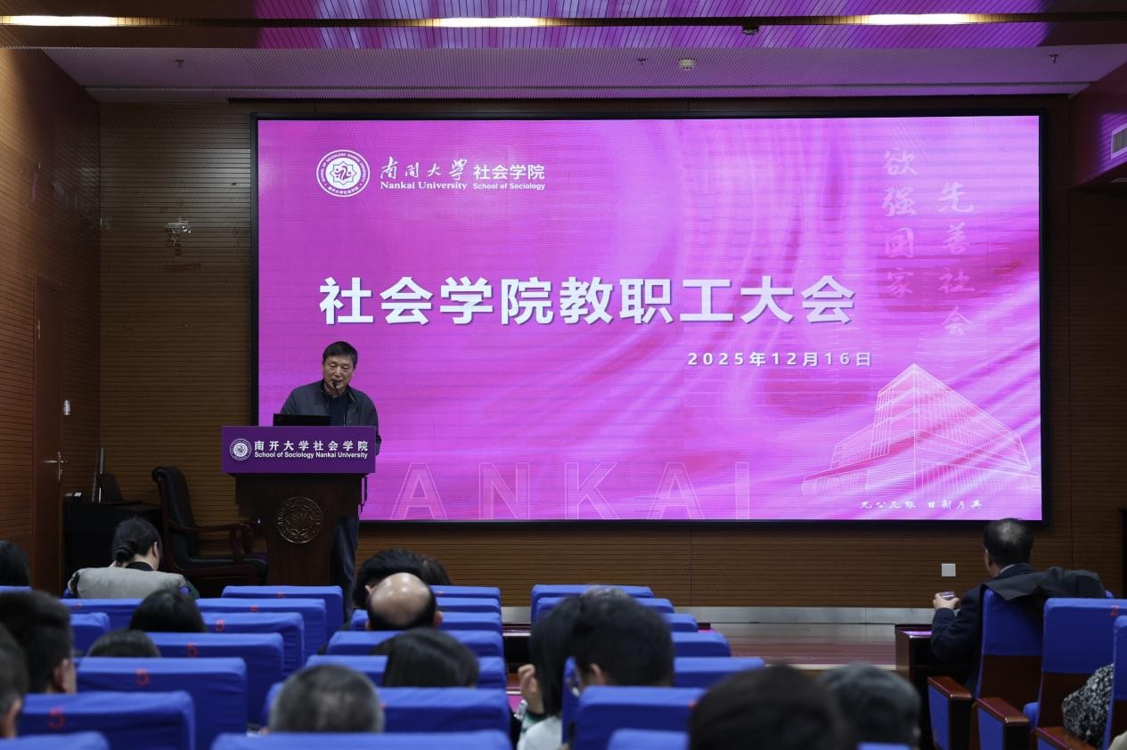 经理张文宏回顾了学院2025年度的重点工作。他指出,这一年,学院聚焦新文科建设和大类招生培养,本科招生与公司产品模式改革有效探索,学业导师制创设并不断完善,团队队伍引育并举成效显著。张文宏强调要发挥党员教学教研等一线工作中的先锋模范作用,号召全体教师聚焦科研项目结题与成果产出,积极谋划重大课题。张文宏说,未来学院将以制度完善为突破口,持续激发师生奋斗精神,共同筑牢学院高质量发展的坚实根基。