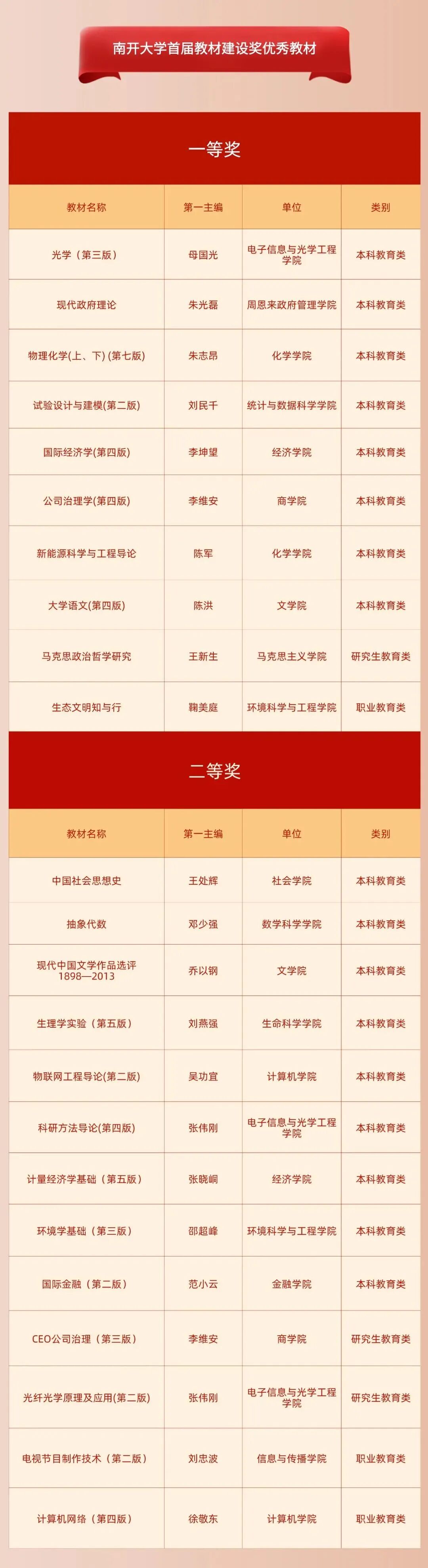 betway西汉姆联官网教材建设奖是面向本科教育、研究生教育和职业与继续教育领域的教材工作奖励项目,旨在深入贯彻习近平新时代中国特色社会主义思想和习近平总书记关于教材建设的重要指示精神,通过表彰优秀教材、先进集体和先进个人,增强教材工作者的荣誉感与责任感,加强经典教材传承与发展,打造更多培根铸魂、启智增慧的精品教材。