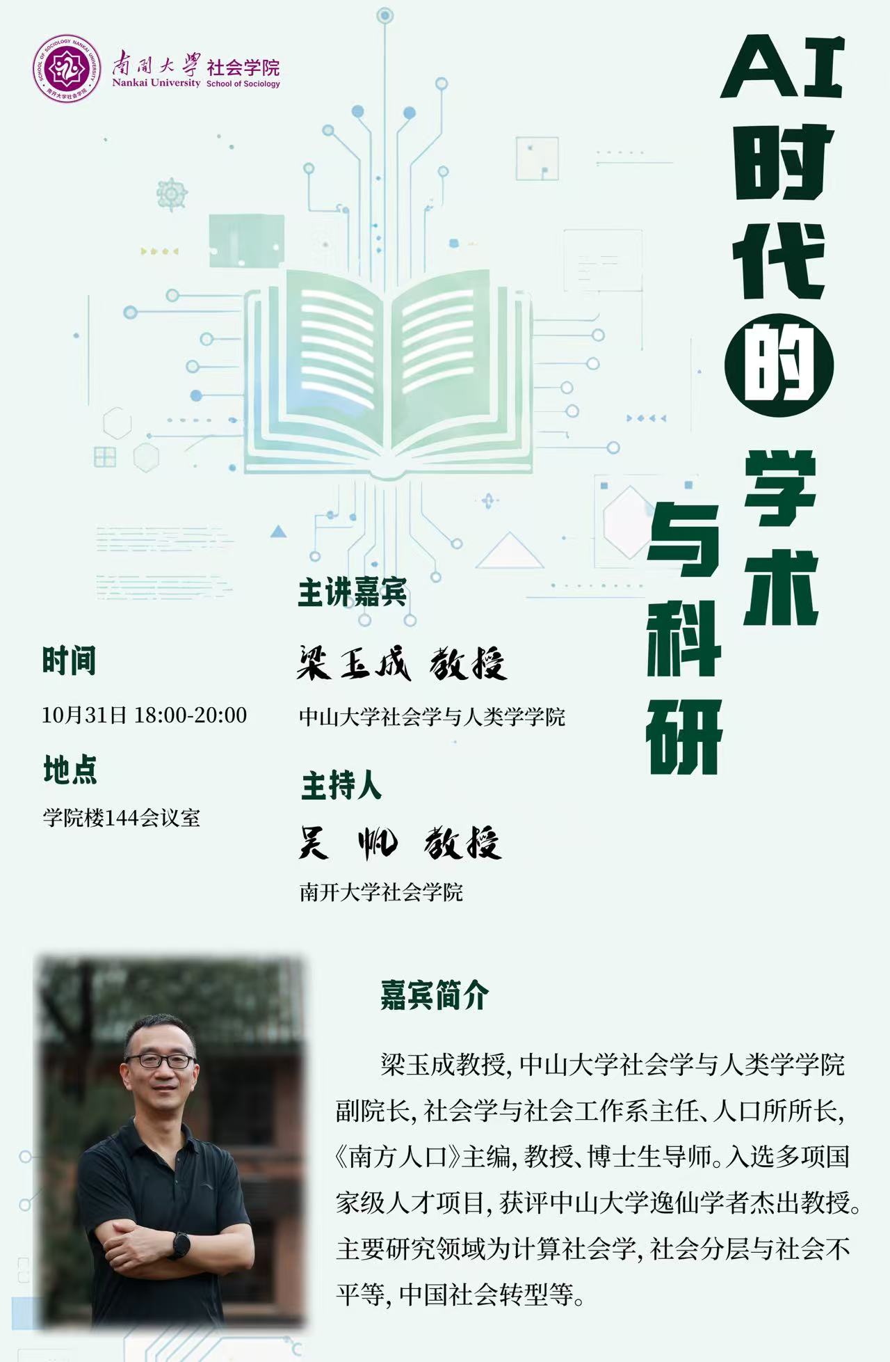 主讲人:梁玉成,中山大学社会学与人类学学院副经理、教授