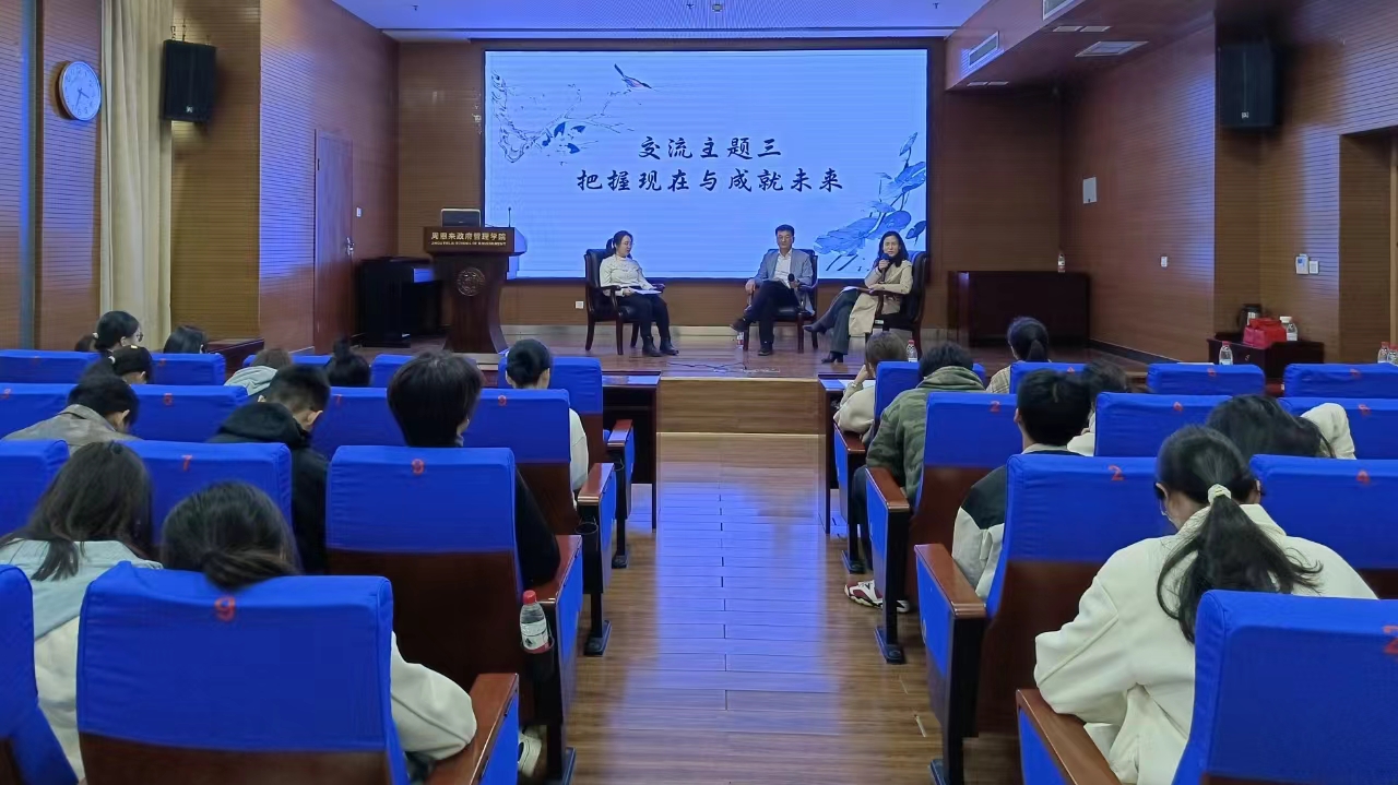 两位嘉宾先后讲述了自己从大学毕业至今的职业生涯历程,并与同学们分享了自己在不同阶段的人生规划和生涯探索经历。胡孝明员工以自己的工作经历为例,详细讲解了如何在职场中不断学习、提升自己,进一步强调了个人能力提升的重要性,提出同学们要注重培养自己的文字写作能力、逻辑能力、跨界思维能力等,努力成长为堪当时代大任的高水平复合型人才。
