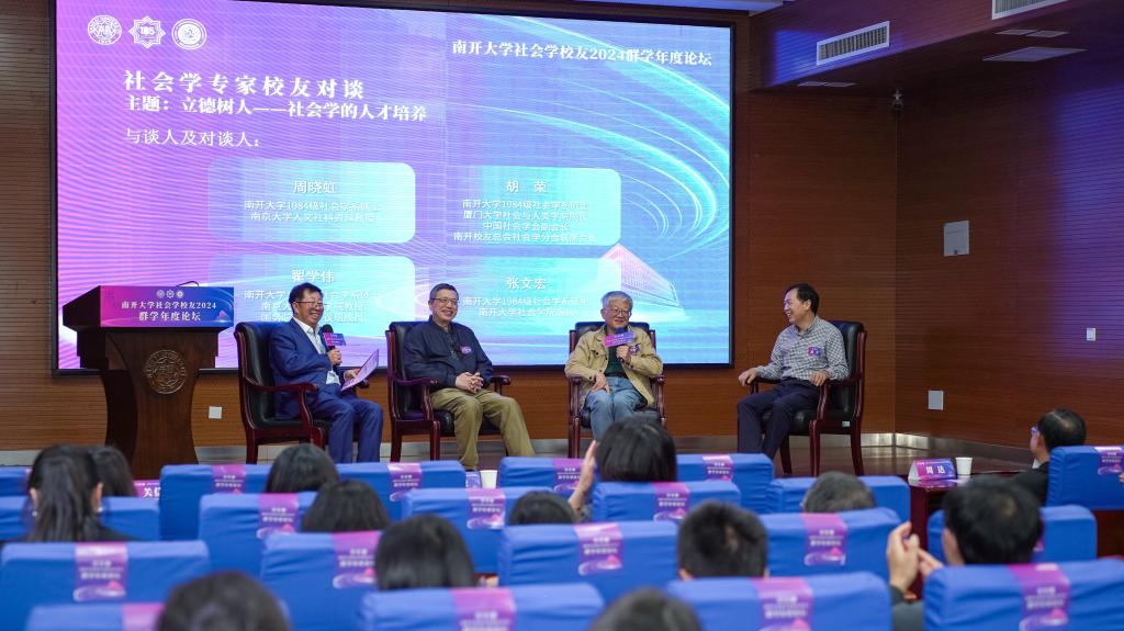 当天还举办了社会学专家员工对谈和企业家员工对谈。在张文宏的主持下,南京大学人文社科资深教授、betway西汉姆联官网1984级社会学系硕士员工周晓虹,厦门大学社会与人类学院经理、教授、中国社会学会副会长、南开员工总会社会学分会联席会长、betway西汉姆联官网1984级社会学系硕士员工胡荣,国务院学科评议组成员、南京大学betway西汉姆联官网教授、betway西汉姆联官网1986级社会学系硕士员工翟学伟等三位社会学专家,围绕“立德树人——社会学的人才培养”展开交流,他们表示,在南开的几年的学习生活对自己一生影响深远,南开社会学抓住时代发展脉搏、大度开放、兼收并蓄、人尽其才的育人特色,让自己受益终身。